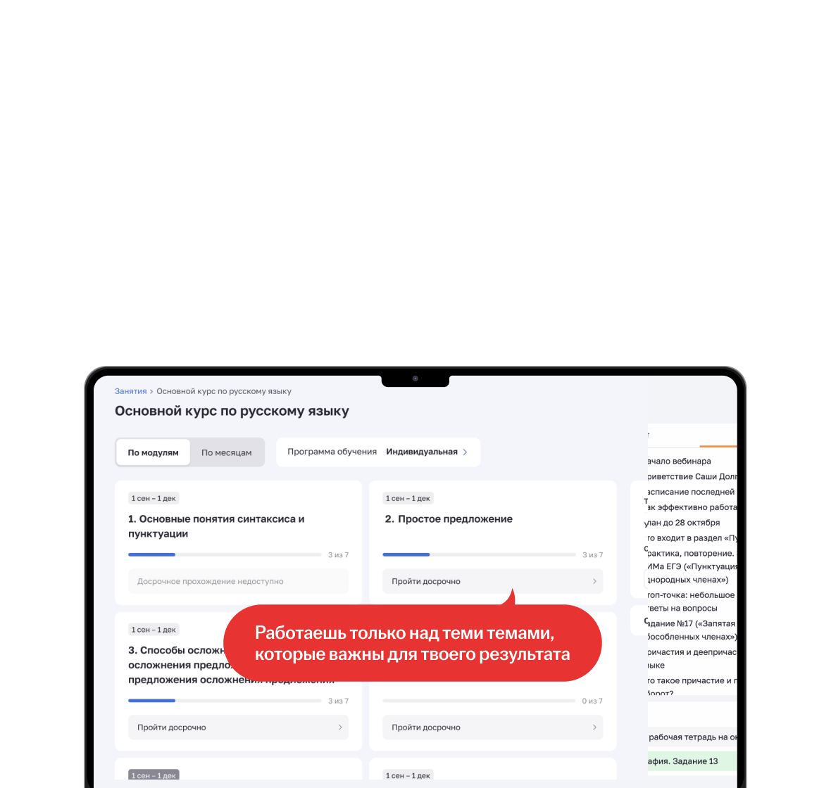 Хочет персональные созвоны для разбора сложных тем